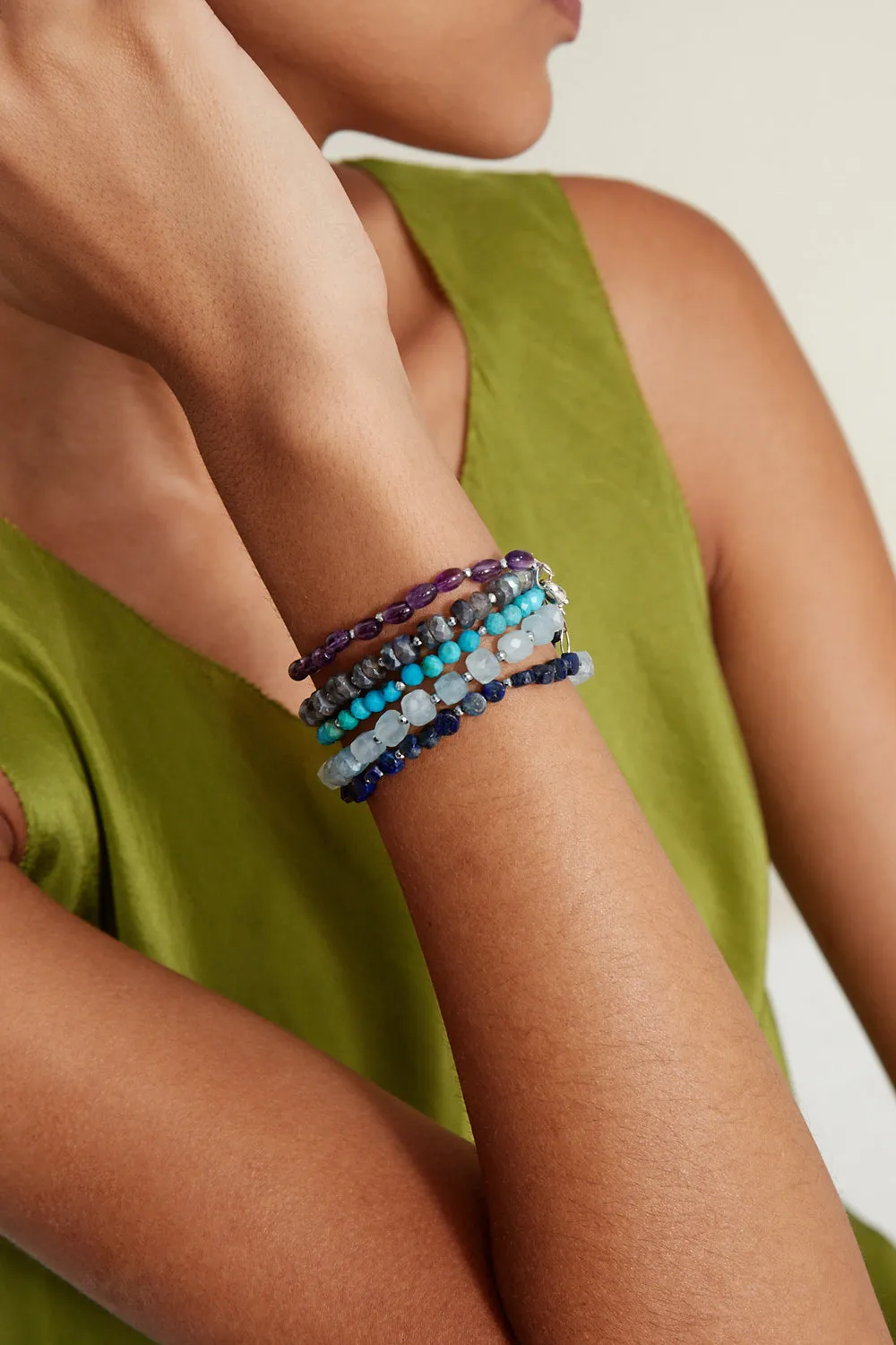 A glowing mix of turquoise, lapis, aquamarine, and more aquatic gems decorate this bold naked wrap bracelet.